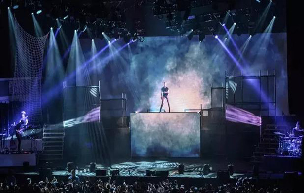 紗幕是網(wǎng)紗材質(zhì)的幕布,是以薄質(zhì)帶有網(wǎng)狀孔眼的棉布或化纖材料制成的半透明幕布,它可以是極為纖細(xì)的鐵絲網(wǎng)、鋼絲網(wǎng),也可以是不容易被肉眼所見的細(xì)致紗布。紗幕一般不作為表演場館的固定裝置,但在大型舞臺表演中,利用紗幕能帶來震撼的視覺沖擊力。