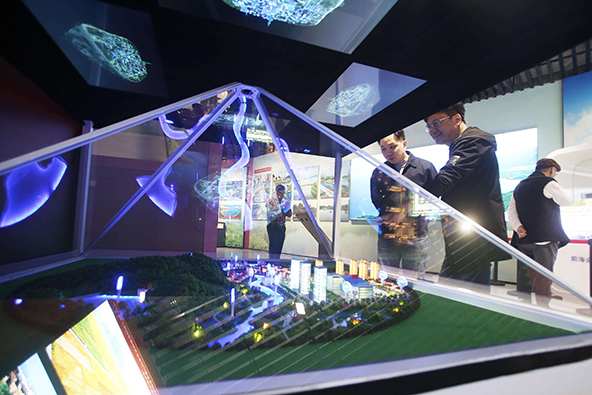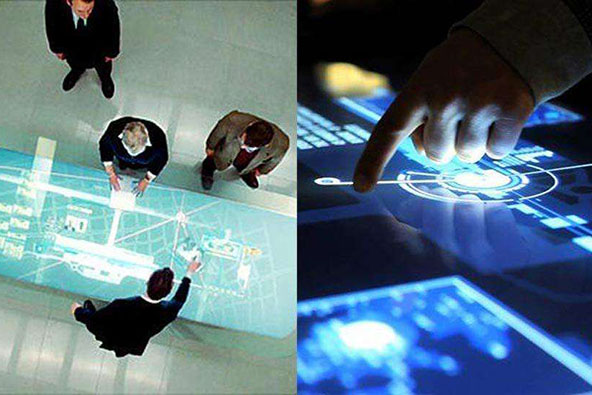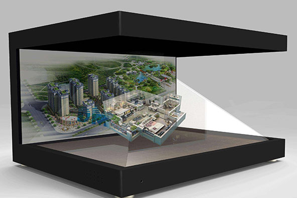 全息互動投影沙盤?在傳統電子沙盤的基礎上,將沙盤放置在定制的全息成像展示柜中,通過計算機多媒體控制技術,控制聲音、視頻等同步顯示,既可通過遙控、手控、感應式控制,也可以通過多媒體控制;既可數碼顯示、單點顯示、組合顯示、動態顯示等。吸引了眾多的房產開發商的注意力,爭相為自己展廳添置科技感十足的全息沙盤展項。