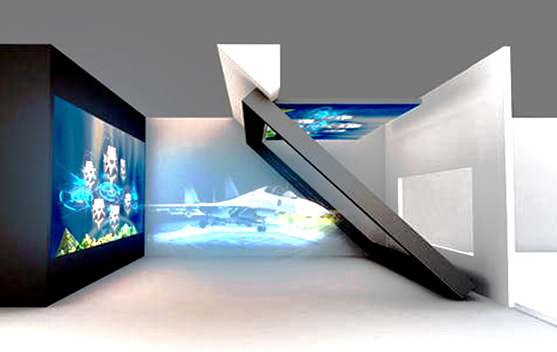 180度全息投影系統也稱為虛擬成像,它是基于“真實場景建?!焙汀盎糜啊惫鈱W成像的結合。虛擬成像產品展示系統是通過對產品真實鏡頭的特殊處理,構建三維模型,然后將拍攝的產品圖像或產品三維模型圖像疊加到場景中,構成動態和靜態的組合。它可以實現大場景、復雜生產線、大型產品等的逼真顯示。