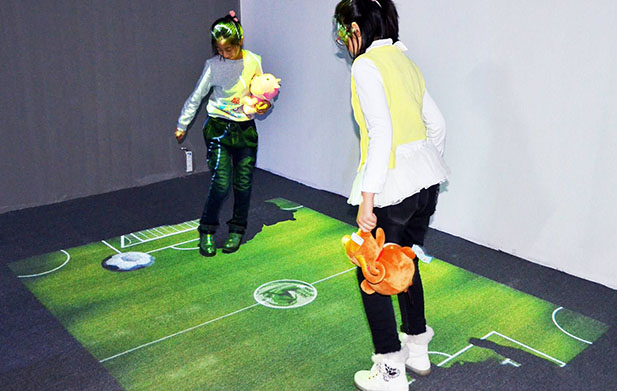 地面互動投影主要是利用圖像投影互動來吸引人們的注意力并創造良好的視覺體驗。地面互動投影還可以使用互動游戲與品牌整合,讓路過的消費者無形中就參與了品牌傳播。地面交互式投影是一種新的,經過升級的投影顯示方法,它基于動態捕獲技術來建立交互式顯示。它與游戲緊密集成,并使用高流明投影儀將圖像投影在普通路面上。當觀眾走過互動區域時,視覺識別系統將識別其動作,從而實現人與地面動態圖片之間的實時互動。